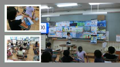 6時間目に鑑賞の授業をしました。自分の作品の頑張ったポイントをみんなに紹介します。観ていた子どもたちも,いいとこみつけを進んでやっていました。