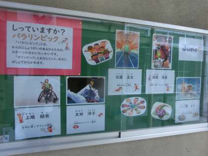 人権の取組「ともだちの日」に関わり,パラリンピックで活躍する選手たちを取り上げた掲示物を掲示しました。子どもたちが足を止めて,よく見ています。