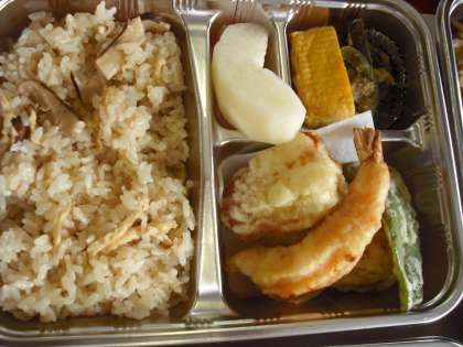 今日は第2土曜日,配食サービスの日です。ボランティアさんたちがおいしいお弁当を作っています。今日は,秋の味覚,松茸ごはんです。
