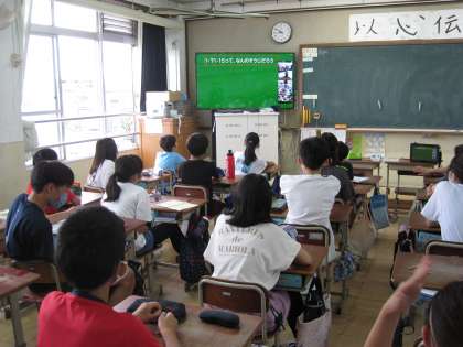 校長先生からの問いかけに,1〜6年生がそれぞれ教室から意見を言い,活発な意見交換ができました。夏休みまで,残り15日です。元気に過ごしてほしいです。