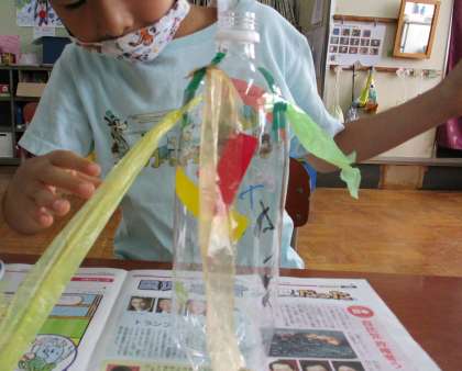 今日は,ペットボトルを使って,自分だけのオリジナルシャワー作りをしました。