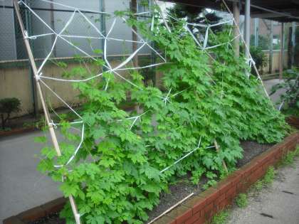 あっという間に背丈を越してしまいました。まだ実はできていませんが,黄色い花を咲かせています。