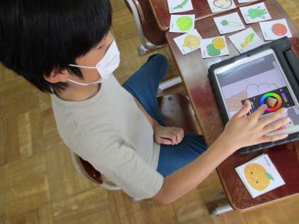 店員さんは,ipad上の絵に,注文からイメージする色をつけてアイスクリームを完成させます。