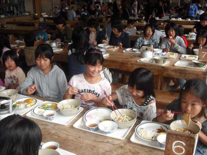 冒険の森で遊んだあとは昼食です。バイキングでおなかがいっぱいになりました。