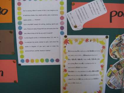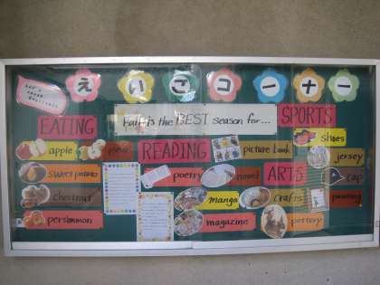 英語ではどのように表されるのか掲示板を見て新しい単語に触れ,秋を感じてほしいと思います。