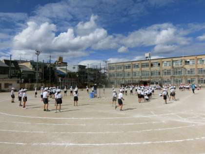 今日もいい天気だったので,ダンス,玉入れの練習を,2年生と合同で行いました。全体でそろって動くことの大切さを伝えています。