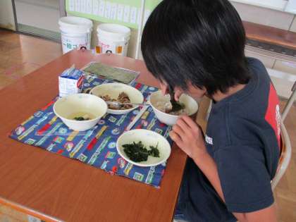 毎日の給食を楽しみにしている仲よし学級の2人。