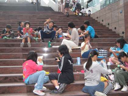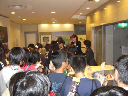 6年生が校外学習に出かけました。はじめに美術館「えき」で「荻須高徳」展を鑑賞しました。その後,大階段近くでお弁当を食べました。