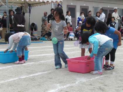 最後の競技は,小学生のヨーヨー釣り競走です。これにて本日の競技は終了です。一日お疲れ様でした。