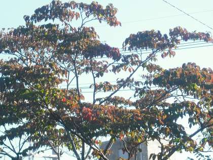 花水木の葉がだんだんと色づいてきました。朝夕の冷え込みで,これから一気に紅葉するでしょう。