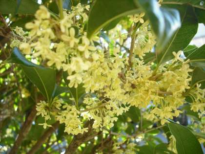 玄関わきの金木犀と銀木犀がいっぱいの花をつけています。