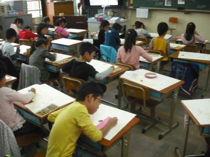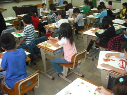 2年生もお話の絵に取り組んでいます。台座おは「もりのおかしやさん」です。さあ,どんなおかしを売ってるのでしょうね。