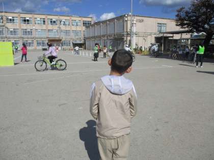 5年生のがんばりをぜひ応援したいと,1年生も運動場に出て,その姿を見守りました。自分も大きくなったらがんばってみようと,心に決める1年生でした。