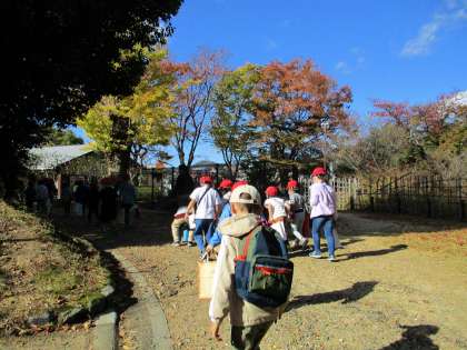 日差しもポカポカする中,公園内を探すと,いろいろな種類のドングリやシイの実,鮮やかに色づいたたくさんの落ち葉など,素敵な秋をたくさん見つけることができました。
