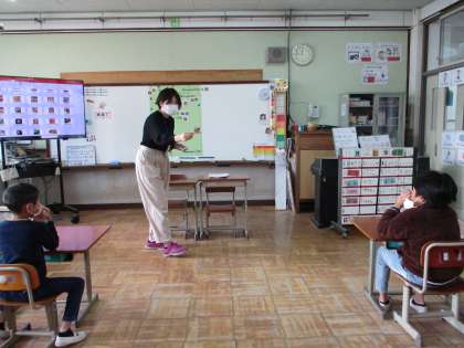 今日の外国語の学習は,2人も楽しみにしていた英語担当教員の授業でした。