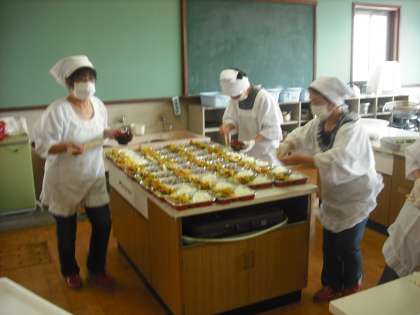 今日は第2土曜日,配食サービスの日です。今日も,ボランティアさんたちがおいしいお弁当を作っています。
