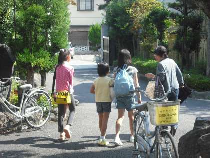 今日も,出来上がったばかりの美味しいお弁当を,ボランティアさんたちと一緒に子どもたちが届けに行きます。