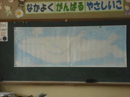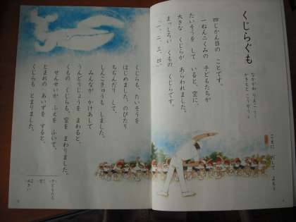 教室に大きな「くじらぐも」が現れました。楽しいお話です。しっかり読もうね。秋の空にくじらぐもは現れてくれるかな?