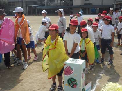 北上支部の育成学級のお友だちの「みんなでワイワイ運動会(支部合同運動会)」が鷹峯小学校で行われました。絶好の運動会日和,たくさんの種目に出場し頑張りました。スイカマンやイチゴママも登場しみんな大喜びです。