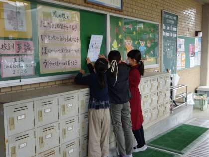総合的な学習の時間「共に生きる」では,「待鳳スマイルプロジェクト」と題して,自分たちが学習してきたことを3年生へ伝えたり,地域へ行ってポスターを貼ってもらったりしました。