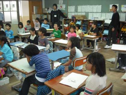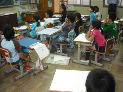 今日は,教育実習生が図工の授業の進め方も参観しています。
