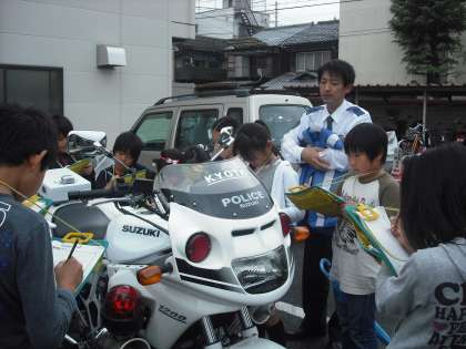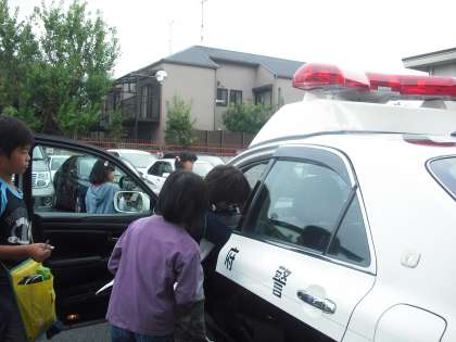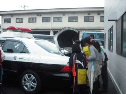 パトカーや白バイがどのようになっているのか,どんなものを積んでいるのかも見せていただきました。