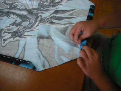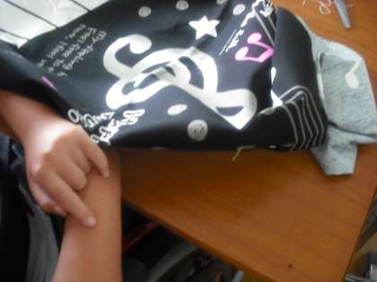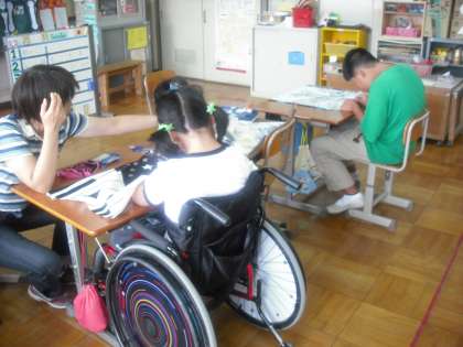 家庭科でエプロンをつくっています。一針一針,丁寧に縫っています。出来上がったら,調理実習でデビューします。