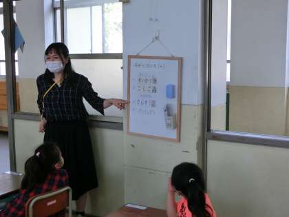 今日は朝のあいさつ,健康観察を丁寧にしたあと,一日の流れを確認しました。