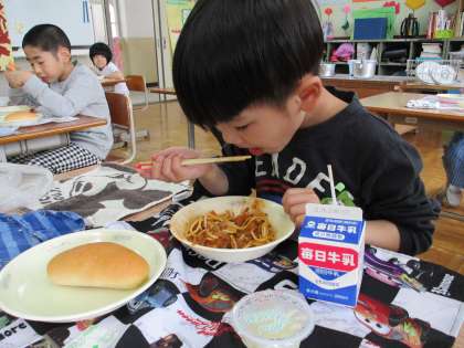 給食中は,おしゃべりをするわけではないけれど,みんなで一緒に食べるとおいしさもアップするようです。