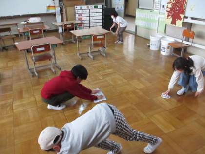 雑巾がけも,みんなでやると楽しそう。