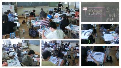 子どもたちは,前回,自分の顔をよく見てデッサンしました。