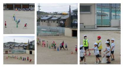 バトンをつなぐことにも慣れてきて,競いながら,走運動を楽しみました。