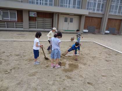 みんな力いっぱい砂を掘って山をどんどん高くしていきました。