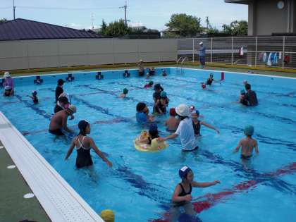 15日午前中,上賀茂小学校で合同水遊び会がありました。スイカマンを水鉄砲でやっつけたり,ビーチボールを水中から遠くへ飛ばしたり,ビート板を使って泳いだり・・・楽しいひとときを過ごすことができました。