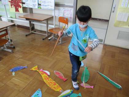 今,算数の学習では魚釣りの活動を楽しんでいます。