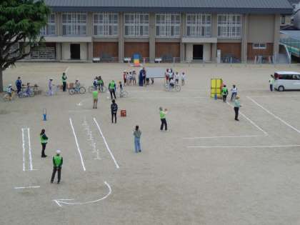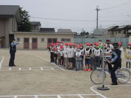 17日(火)午前中に運動場で自転車安全教室が開かれました。