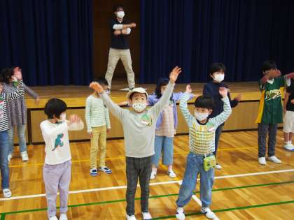 みんなと一緒に体操をする時も,積極的に前に出て,体を動かしていました。