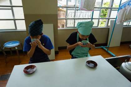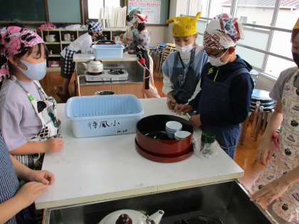 子どもたちは安全に気をつけながら,湯を沸かし,おいしいお茶を入れることができました。急須や茶たくを初めて使う子どももおり,使い方も丁寧に確認していました。「みんなで作ったお茶は一段とおいしい。」と言っていました。