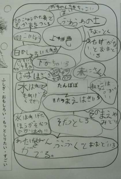 今日は,イメージマップという思考ツールを活用して,子どもたちがもっているたんぽぽのイメージを膨らませました。