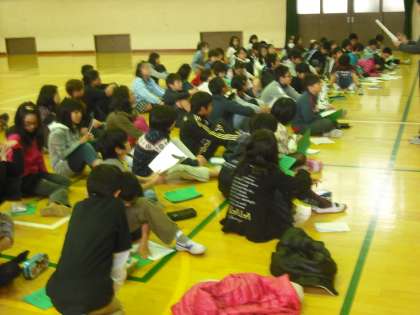 来週はいよいよ山の家。5年生全員が集まって,合同キャンプファイヤーやグループ活動の点検をしています。土・日と体調を整えて,全員そろって山の家に行きましょう。