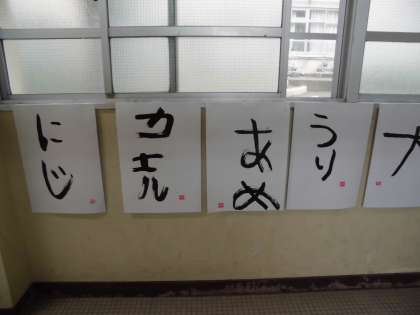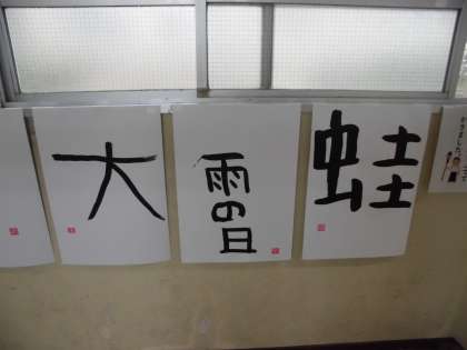季節の言葉をそれぞれ考えて,筆で書きました。