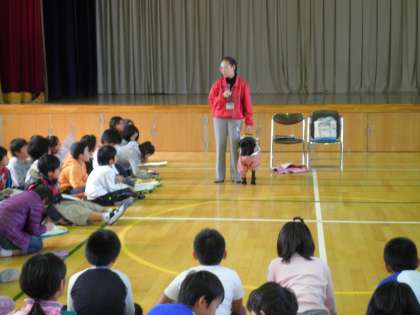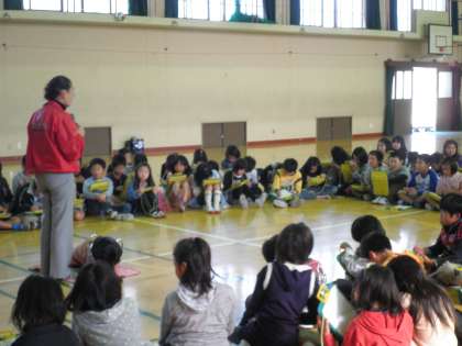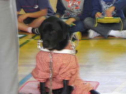 旭ライオンズクラブのお世話で,監査お盲導犬協会の方に盲導犬とともに来ていただいて,盲導犬について教えていただきました。総合的な学習の時間で福祉について学習している4年生にとって大切な時間となりました。