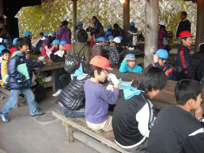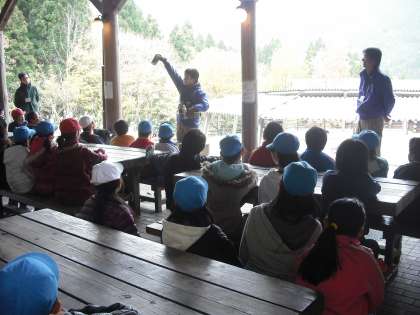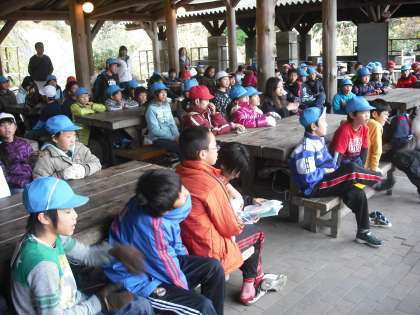 いよいよ3校合同の野外炊事が始まりました。山の家の先生から,野外炊事の注意することを聞きました。