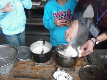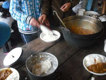 さあ,ごはんも炊けました。おこげを作ったグループや少しやわらかいグループもありましたが,みんな出来上がりに大喜びです。もちろん,カレーやハヤシもおいしそうに出来上がりました。