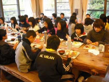 最後の朝食です。昨夜もぐっすり休んだので,みんなの食欲は衰えていません。朝食時から,昼食のメニュー(丼・カレー・麺類)を考えている子もいます。