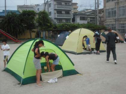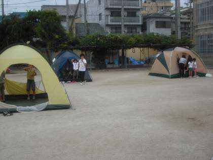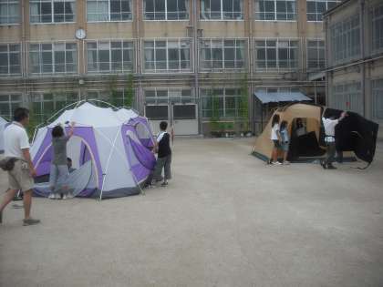 ラジオ体操の後は,朝食までの間に寝ていたテントの掃除をします。