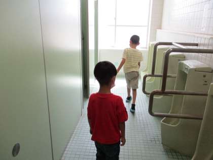 そこで、「がっこうでトイレにいけるかな」の絵本の読み聞かせをみんなで聴いたあと、トイレについて思っていることを交流したり、実際に改めてみんなでトイレに行ってみたりしました。