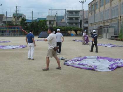 子どもたちがプールに入っている間に,スタッフの皆さんがテントの後片付けをしてくださっています。ありがとうございます。