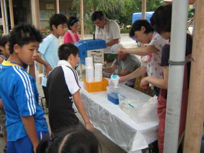 プールが終わり,かき氷をいただきました。お泊り会も,もうすぐ終わりです。
