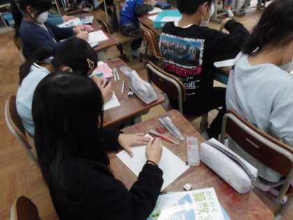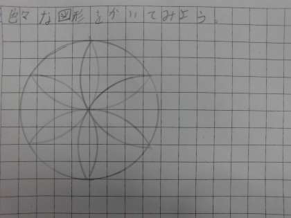 動画を見ながら、図形を描きましたが、思った以上に難しかったようです。それでも写真のように上手にかけている子もいました。